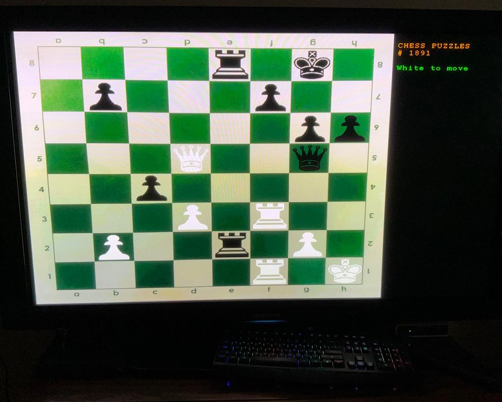Chess Puzzles Two programs for Color Maximite 2 One program features 2000 Chess Puzzles. The other program features about 1.6 million puzzles if you download the full version or about 320,000 puzzles if you download the small version. Small version https://github.com/bar1010/Color-Maximite-2/blob/master/Chess%20Puzzles.zip Full version has four parts. Use 7-Zip Extract Here on the first part. https://github.com/bar1010/Color-Maximite-2/blob/master/Chess%20Puzzles.7z.001 https://github.com/bar1010/Color-Maximite-2/blob/master/Chess%20Puzzles.7z.002 https://github.com/bar1010/Color-Maximite-2/blob/master/Chess%20Puzzles.7z.003 https://github.com/bar1010/Color-Maximite-2/blob/master/Chess%20Puzzles.7z.004 |