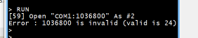 I get an expected error message: ![]() "1036800 is invalid (valid is 24)" - is definitely an odd error message, and I suspect it is a bug of some sort. What are you using? 170 MM2 chip? MM+ chip? ARMmite? PicoMite or PicoMite VGA? My message came from a MM2 on a 170 chip, simply as I happened to be writing something at the time I checked the forums, and everything was all hooked up, so I was able to do a quick spontaneous test. EDIT: Just tried this on a PicoMite, and I get the following error report: ![]() So, it looks like you've maxed out the com port speed. ![]() Edited 2022-12-13 22:35 by Grogster Smoke makes things work. When the smoke gets out, it stops! |