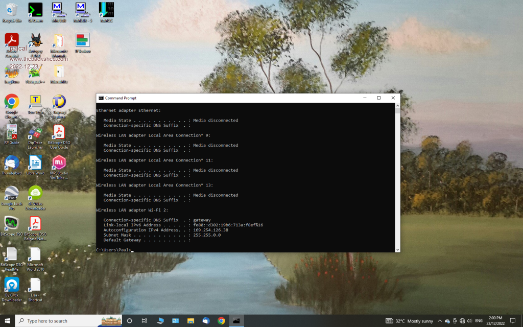 The laptop is connected and works OK. The workshop computer connects to the wifi but has no internet and when I trouble shoot I get the message 'Invalid IP configuration' Running ipcofig gives me ![]() "It is better to be ignorant and ask a stupid question than to be plain Stupid and not ask at all" |