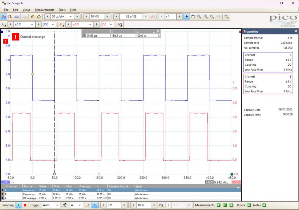 Quote  P.S. In my particular switchmode power supply test, I used 100kHz up to 400kHz frequencies, and had very small time offsets. That would require fractions of a microsecond start delay. I guess in that application the "poke" still is needed.