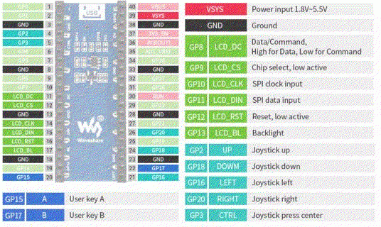 I have one of these boards and would like to know if it will be possible to use it on the Picomite Waveshare 1.14" LCD 240X135 Website says it uses an ST7789 Driver https://www.waveshare.com/pico-lcd-1.14.htm Has anyone managed to use one of these with the Picomite? If so could you share your OPTION SYSTEM SPI and OPTION LCD PANEL settings. It looks like there are some Pin conflicts, so is there a way to get around this? The Picomite Pin out diagram in the manual (pg. 9) shows Pins 31, 32 and 34 as being " SP2" pins, is this an error and they should be SPI2? ![]() ![]() Cheers |