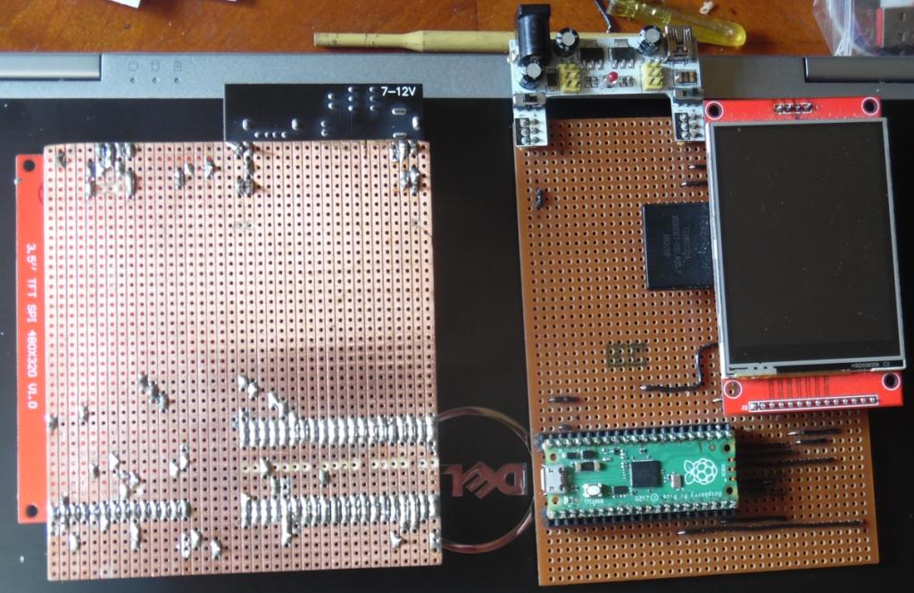Hi, I had a déjà vu experimenting with the pico and a spi display with touch screen. It didn't work as expected. Why? I didn't held me at the HF rules I learned as Ham-radio amateur. The spi is working at 25 MHz and with long thin wires you generate several noise problems on the spi bus. The power (3V) gives a smaller noise ratio then at 5V and amplifies the problem. On a designed PCB the problem doesn't occur because of the copper-pour shielding. The problem was the gui test lcdpanel command. It shows moving circles and generates a lot of SPI traffic. The first minute all seems working fine, but after that the display flashes white and doesn't recognize any command until the Pico is reset or power down upped. This far I only experimented with microcontrollers lower than 35 MHz clock and 400 KHz spi bus. So simply soldering a pico with wires on a experimenters PCB can generate a lot of problems Then I see a contribution from Tom with his Pico bintendo. Nice photos but he doesn't show his wire side. . I'm curious how he did it.Edited 2023-03-27 15:59 by nbrok Greetings, Nick de pe1goo |