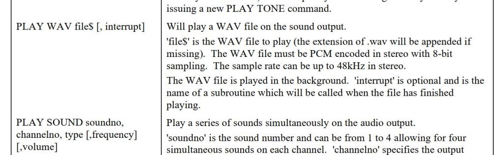 The latest FW supports the 4822 DAC chip, which seems to be a lovely additional feature to have. Can you use this with PLAY WAV, or is it only designed to work with PLAY SOUND or PLAY TONE? I have seen plenty of examples of using PLAY SOUND and PLAY TONE in the threads, but no mention of being able to play WAV files off the SD card via this chip. Yes you can? No you can't? Assuming you can, the manual mentions that WAV files have to be 8-bit sampling. With the 12-bit DAC chip, can I assume that WAV files can now have 12-bit sampling? Yes? No, must remain at 8-bit? Peter also mentions in one of his posts about the DAC, that it uses a bit more of the grunt of the 2040 processor then the passive L/C filter method does. ROUGHLY how much more CPU does using the DAC involve? Smoke makes things work. When the smoke gets out, it stops! |