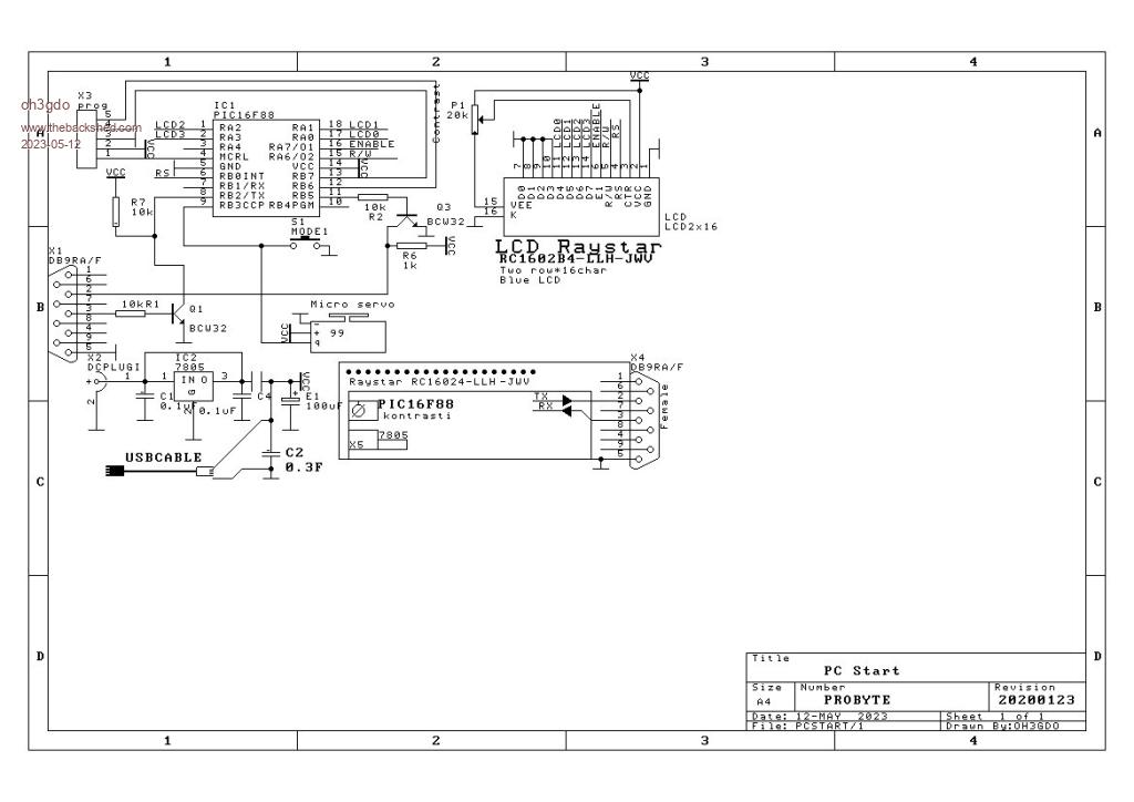 Mixtel90 No, I just put a super capacitor and tested it. I works. The PC limits USB current to 0.5A. I used my old PCB and removed old power supply and replaced it with USB cable. When the PC is sleeping, my PIC clock was looking the time with USB power and when the time starts at morning, my PC starts with servo. It pushed the on/off switch. When we went to sleep. it pushed again the same switch. Later I found a similar function in the PC, but it doesn't put PC off. I found the same thing, which worked with HP PCs, but not with my HP550. It is very slow PC, but suits for me. It sends the results to my Internet place and I can follow data at works. It is used to log with my data logger. ![]() ____ Pekka |