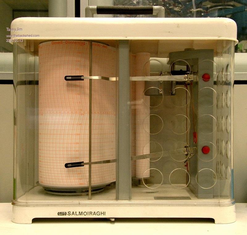 The drum was clockwork and the charts could be 24 hour or 7 days per revolution.