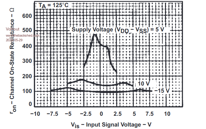 See this screenshot from the datasheet. When running at 5V it is already 400-500 ohm.