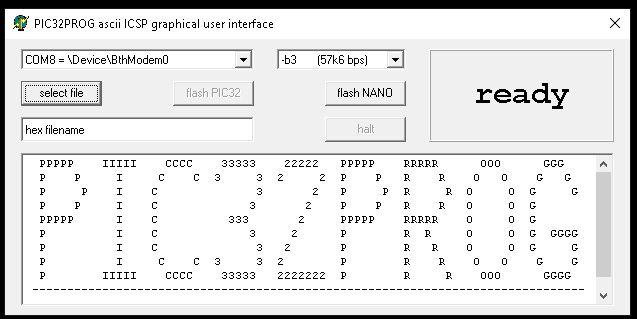 you need to ensure that nothing (apart from the 1455 or nano) is attached to the PGC and PGD pins of the pic32. this may, for instance, involve unplugging any attached LCD display. in case the pic32MX is 'stuck' in a corrupted state, which i have had happen on occasion, you can do a 'forced erase' using: pic32prog -d ascii:com8 -b8 or -b9 for MZ pic32's. it looks like the file repository, where p32p_gui lived, is no longer there. but grogster may still have a copy on his website. although i don't remember if it has any option to select -8 or -9 to do a forced erase. cheers, rob :-) Edited 2023-06-08 22:01 by robert.rozee |