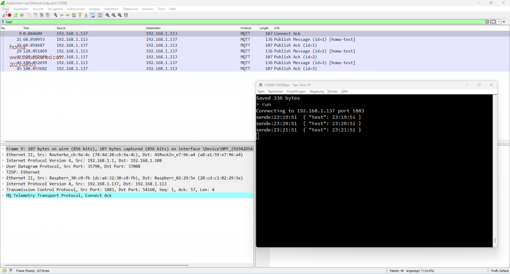 4) after another 10 seconds the next MQTT message. But instead the message "mqtt_publish: TCP disconnected" AND no TCP messages in WireShark!!!!