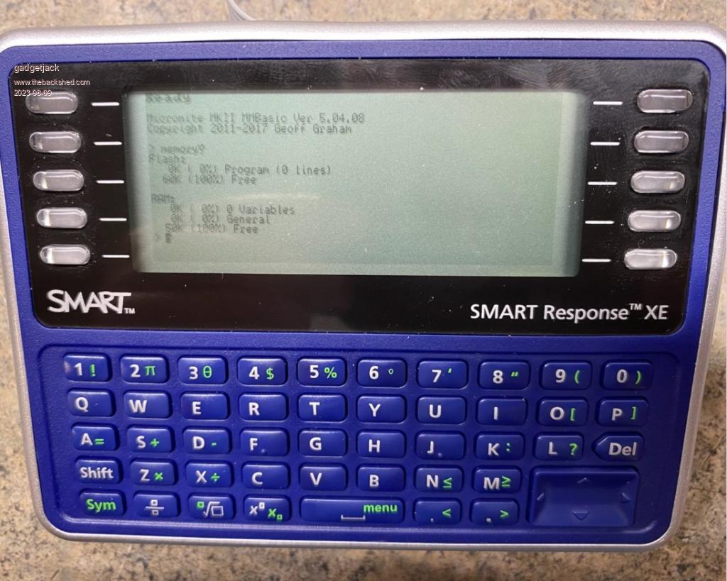 I bought one of these Smart-Response XE gadgets to play with from e-bay. I first tried the tiny basic on git-hub and found it less than impressive. So I thought why not try stuffing a micro-mite in the case and use the terminal software from get-hub as keyboard and display. Well it does work but not great. Had to slow down to 9600 baud. Now there is no way to exit the editor when you type in a program (no function keys) so back to a nice paper weight. But , I did make it sorta work so maybe I get a beer anyway. The rain stopped .....