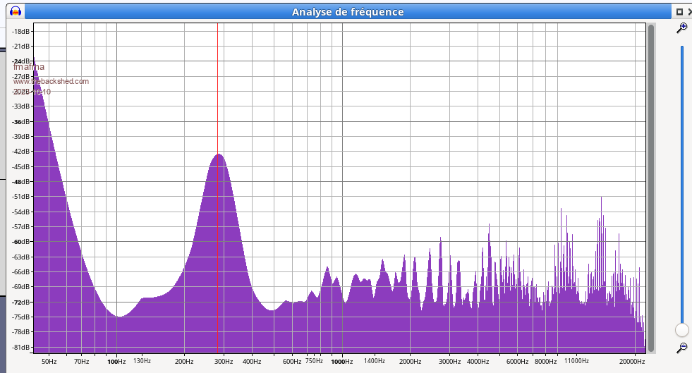 I still have a lot of troubles with the sound output. I connected my board to a little amplifier module based on a PAM8403, and I get horrible noises. I thought it was an issue with my power supply, but even powered from a PowerBank, I can ear the same noises. I hooked up my board output to my PC sound card: here too, I can hear noises, but a little bit less. Here is a capture of the analyse from Audacity. Any idea where the 280Hz noise (and all harmonics) can come from? ![]() Frédéric |