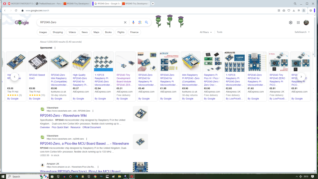 can it be progged with mmbasic and any info? ae argh login.. ebay, I'll check. will it be more difficult than mcp23017.. if that's possible? I like the idea of i2c expanders and at a good price a rpizero...what ever that is. If you think an i2c expander useful and rpizero for £1.50 then useful for others.. lib type commands like it's in the manual. If it's spi then complicates using ili lcd but i2c better. Edited 2023-12-01 10:16 by stanleyella |