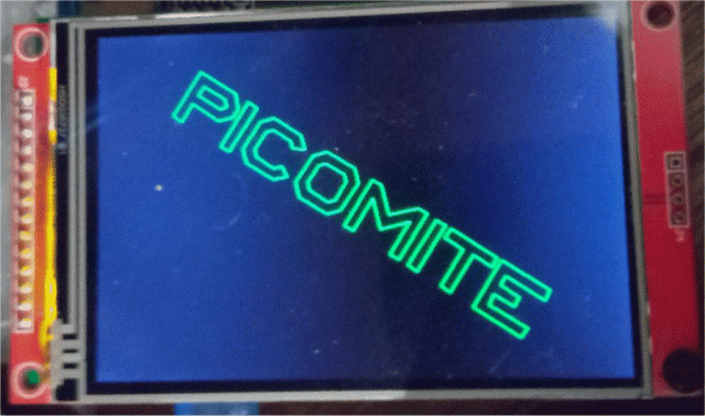 Also works for me with ILI9488, though the speed of rotation is, uh, stately. ![]() In some orientations, there are artifacts on the right and bottom margins. I don't exactly see what might be done in the program to fix that. Maybe pixels beyond hres-1 and vres-1 are clipped to those values. (Note: with this firmware, this picomite locks up at CPUSPEED 378000, though it previously worked (for at least some programs) at that speed. picospin.bas was run at 252000.) PicoMite, Armmite F4, SensorKits, MMBasic Hardware, Games, etc. on fruitoftheshed |