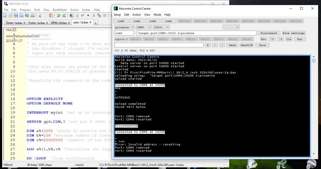 The post "A PicoMite CSUB to timestamp pin changes" describes how to measure microseconds. When I use the program, I get an error message after starting it. The CSUB at the end of the post is used. I can't find the reason.