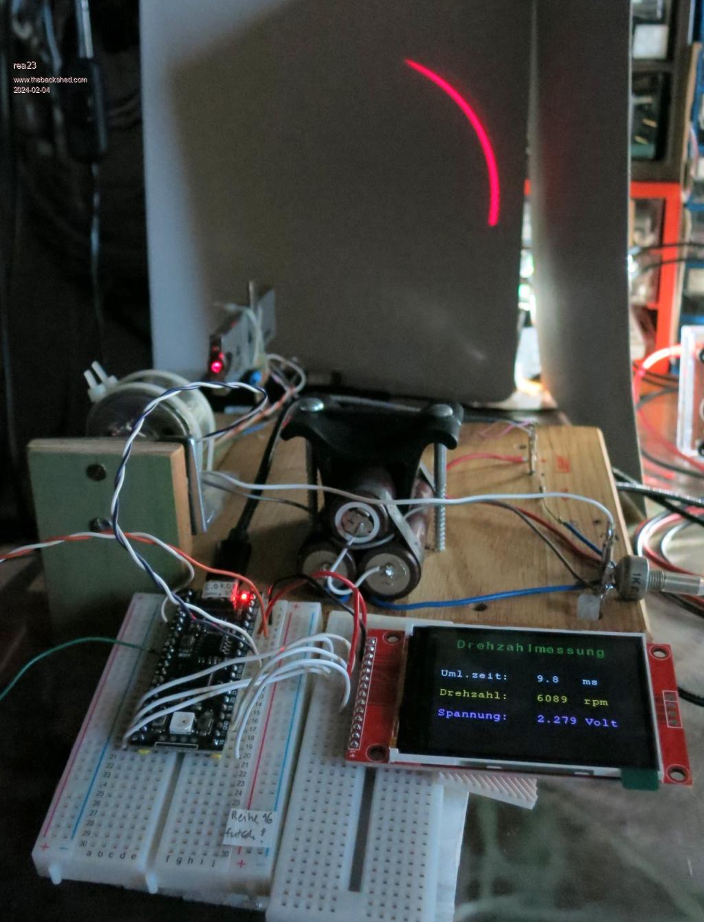 The sensor is only sensitive to IR and not to the 650 nm laser. Due to the distance between the laser and the sensor (camera in between), an IR LED is also unsuitable. So I used a halogen bulb. No success in terms of measured times. Maybe I can think of something else...