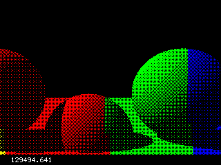 HackaDay readers will have seen the blog posting about a ZX Spectrum Raytracer, in BASIC, which links to Gabriel Gambetta's posting. I've reworked his program (last iteration) so that it at least runs on the PicoMite. That involved removing all line numbers, gotos, gosubs and other detritus from 40 year old BASIC. I haven't delved into the inner workings to figure out the colour issues. edit: If I understand the timing, the PicoMite takes less than 2 minutes to do what the ZX Spectrum does in 17 hours. ![]() mode 1 autosave '================================== ' Gabriel Gambetta's ZX Spectrum Raytracer ' from <https://gabrielgambetta.com/zx-raytracer.html> ' Ported to PicoMiteVGA by Vegipete ' mode 2 : CLS Dim ctab(15):For i = 0 To 15: Read ctab(i) : Next Data RGB(BLACK),RGB(BLUE),RGB(GREEN),RGB(CYAN),RGB(RED) Data RGB(MAGENTA),RGB(YELLOW),RGB(WHITE),RGB(MYRTLE) Data RGB(COBALT) ,RGB(MIDGREEN),RGB(CERULEAN) Data RGB(RUST), RGB(FUCHSIA),RGB(BROWN),RGB(LILAC) ' ===== Initialize scene ===== LX = -1/SQR(2) LY = 1/SQR(2) LZ = 0 AI = 0.075 DI = 1 - AI RESTORE sphere READ NS DIM SPH(NS,5) FOR S = 1 TO NS FOR I = 1 TO 5 READ SPH(S, I) NEXT I NEXT S ' ===== Initialize 8x8 Bayer matrix ===== DIM HBay(64) RESTORE Bayer FOR I = 1 TO 64 READ HBay(I): HBay(I) = HBay(I) / 64 NEXT I DIM Cary(64), Lary(64), Aary(8) timer = 0 DZ = 1 FOR X = 0 TO 312 STEP 8 FOR Y = 0 TO 175 STEP 8 ' --- Fast approximate path: ' if all 4 corners of this 8x8 block black, ignore the block --- DX = (X - 128) / 256 : DY = (Y - 88) / 256 TraceRay CTL = PC : LTL = PL DX = (X - 128 + 7) / 256 TraceRay CTR = PC : LTR = PL DY = (Y - 88 + 7) / 256 TraceRay CBR = PC : LBR = PL DX = (X - 128) / 256 TraceRay CBL = PC : LBL = PL IF CTL = 0 AND CTR = 0 AND CBR = 0 AND CBL = 0 THEN continue for '(Y) ' --- For each 8x8 block, collect the pixel colors and their counts --- CI = 1 PL = 0 FOR U = X TO X+7 DX = (U - 128) / 256 FOR V = Y TO Y+7 select case CI case 1 PC = CTL: PL = LTL case 8 PC = CBL: PL = LBL case 57 PC = CTR: PL = LTR case 64 PC = CBR: PL = LBR case else DY = (V - 88) / 256 TraceRay end select Aary(PC+1) = Aary(PC+1) + 1 Cary(CI) = PC Lary(CI) = PL CI = CI + 1 NEXT V NEXT U ' --- Find most frequent color in this 8x8 block --- MFC = 0 FOR C = 2 TO 8 IF Aary(C) > MFC THEN MFC = Aary(C): MFI = C NEXT C FC = MFI - 1 ' --- PLOT the non-zero pixels if they're below the dithering threshold -- CI = 1 FOR U = X TO X+7 FOR V = Y TO Y+7 IF Cary(CI) > 0 AND HBay(CI) <= Lary(CI) THEN pixel U,220-V,ctab(FC) CI = CI + 1 NEXT V NEXT U NEXT Y print @(10,225) timer " "; NEXT X end ' ===== TraceRay ===== ' Params: (DX, DY, DZ): ray direction ' Returns: PC: pixel color; PL: pixel light intensity ' Optimizations: ray origin hardcoded to (0, 0, 0); (TMIN, TMAX) hardcoded to (0, +inf) ' Clobbers: A, CS, B, C, D, IX, IY, IZ, MT, NL, NX, NY, NZ, S, T sub TraceRay local H = 0 MT = 1E10 A = 2*(DX*DX + DY*DY + DZ*DZ) FOR S = 1 TO NS B = 2*(DX*SPH(S,1) + DY*SPH(S,2) + DZ*SPH(S,3)) C = SPH(S,1)*SPH(S,1) + SPH(S,2)*SPH(S,2) + SPH(S,3)*SPH(S,3) - SPH(S,4) D = B*B - 2*A*C IF D < 0 THEN continue for D = SQR(D) T = (B + D) / A IF T > 0 AND T < MT THEN PC = SPH(S, 5) : MT = T : CS = S T = (B - D) / A IF T > 0 AND T < MT THEN PC = SPH(S, 5) : MT = T : CS = S NEXT S IF MT = 1E10 THEN PC = 0: exit sub IX = DX*MT: IY = DY*MT: IZ = DZ*MT NX = IX - SPH(CS, 1): NY = IY - SPH(CS, 2): NZ = IZ - SPH(CS, 3) PL = AI CheckShadow(H) IF H = 1 THEN exit sub NL = (NX*LX + NY*LY + NZ*LZ) IF NL > 0 THEN PL = PL + DI * NL / SQR(NX*NX + NY*NY + NZ*NZ) end sub ' ----- Specialized TraceRay for shadow checks ----- ' Params: (IX, IY, IZ): ray start; (LX, LY, LZ): ray direction (directional light vector) ' Returns: H = 1 if the ray intersects any sphere, H = 0 otherwise ' Optimizations: (TMIN, TMAX) hardcoded to (epsilon, +inf) sub CheckShadow(H) A = 2*(LX*LX + LY*LY + LZ*LZ) FOR S = 1 TO NS CX = IX - SPH(S,1): CY = IY - SPH(S,2): CZ = IZ - SPH(S,3) B = -2*(CX*LX + CY*LY + CZ*LZ) C = (CX*CX + CY*CY + CZ*CZ) - SPH(S, 4) D = B*B - 2*A*C IF D < 0 THEN continue for D = SQR(D) T = (B + D) / A IF T > 0.01 THEN H = 1: exit sub T = (B - D) / A IF T > 0.01 THEN H = 1: exit sub NEXT S H = 0 end sub Bayer: DATA 0, 32, 8, 40, 2, 34, 10, 42 DATA 48, 16, 56, 24, 50, 18, 58, 26 DATA 12, 44, 4, 36, 14, 46, 6, 38 DATA 60, 28, 52, 20, 62, 30, 54, 22 DATA 3, 35, 11, 43, 1, 33, 9, 41 DATA 51, 19, 59, 27, 49, 17, 57, 25 DATA 15, 47, 7, 39, 13, 45, 5, 37 DATA 63, 31, 55, 23, 61, 29, 53, 21 ' ----- Sphere data ----- ' Sphere count, followed by (CX, CY, CZ, SR*SR, SC) sphere: DATA 4 DATA 0, -1, 4, 1, 2 DATA 2, 0, 4, 1, 1 DATA -2, 0, 4, 1, 4 DATA 0, -5001, 0, 5000^2, 6 Edited 2024-01-28 07:52 by vegipete Visit Vegipete's *Mite Library for cool programs. |