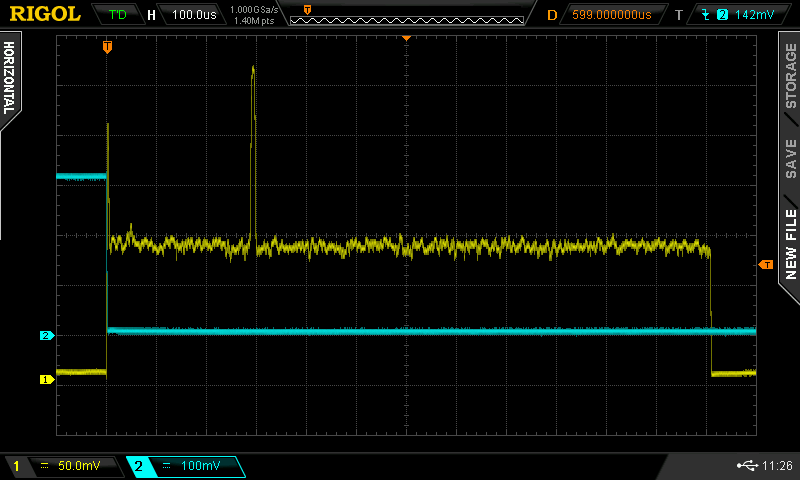 Blue trace is a sync pulse for the DSO trigger