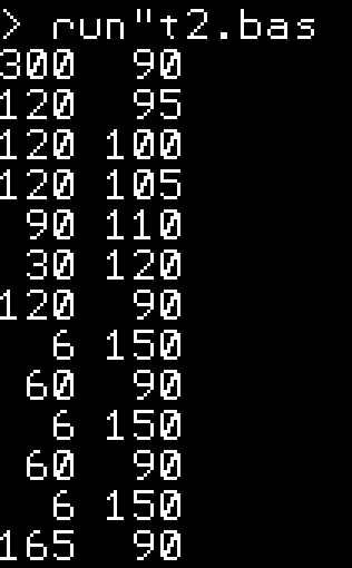 This code prints out 2 columns of zeros, (it is the times and cadence for the British cycling 20 minute warm up) white space is added to align times with cadence when the screen width is set just right, the "DIM" is all on one line.