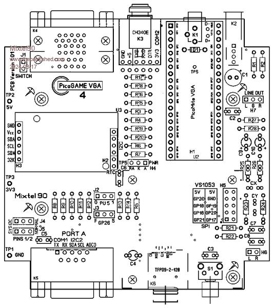 I know it's been a while but I kept allowing myself to get distracted. :) I'd better warn you, this one is hot off the drawing board in some places. It isn't a tested design (yet) although I think all the different items (VS1053, USB, VGA pins, game port etc.) have all been tested individually now. Once again, it's a pretty flexible board and you have various options that you can use. It's rather a good idea to read the manual. :) If you decide to put it in a case then you will have to chop out some of the PCB support pillars to get it to fit. Sorry 'bout that. PicoGAME 40 gerber.zip PicoGAME 4 101 circuit.pdf PicoGAME 4 101 manual.pdf Mick Zilog Inside! nascom.info for Nascom & Gemini Preliminary MMBasic docs & my PCB designs |