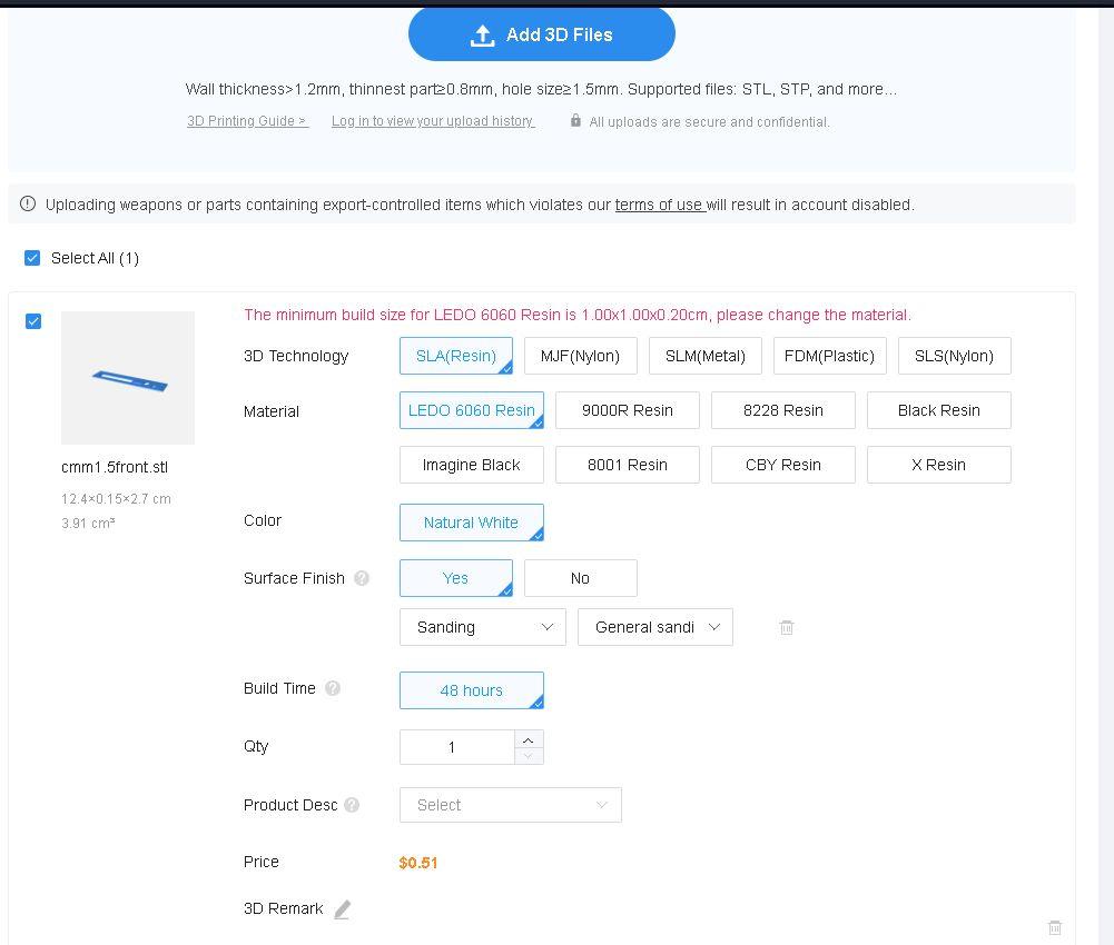 You selected 0.15cm thick, and 0.2cm (2mm) thick is the minimum they offer. You could redesign the panels to be 0.2cm thick, and have the edges slimmed down to 0.15cm. Volhout PicomiteVGA PETSCII ROBOTS |