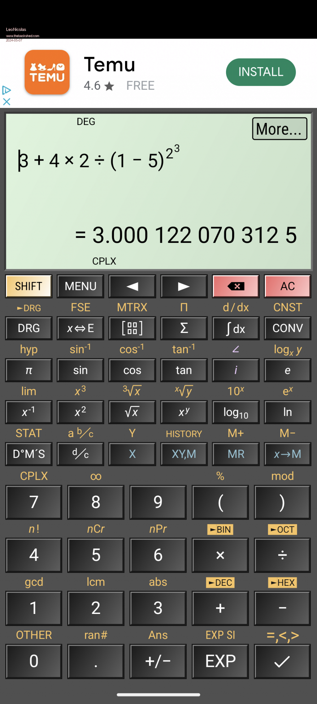From the android app HiPER Scientific Calculator |