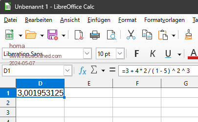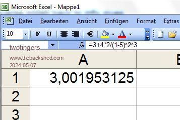 More and more interesting So we have Excel and MMBasic agreeing but anything that converts to rpn disagreeing The question is whether to read 3 + 4 * 2 / ( 1 - 5 ) ^ 2 ^ 3 as 3+((4*2)/((1-5)^(2^3))) = 3.00012207 or 3+((4*2)/((1-5)^2)^3) = 3.001953125 Quarzee137. Please can you explain why you interpret the expression to yield the former - which is what the rpn convertor does rather than the first exponentiation operator applying to the (1-5)? |