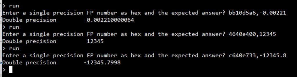 Stan, The internal encodings of single & double (IEEE) floating point numbers are fairly similar but need some adjusting to convert from single to double. Peter's code does the magic needed. It's a bit ugly looking but hey MMBasic was never designed to do it - and you can just grab the code :) John |