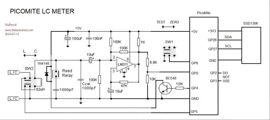The circuit consists of 2 blocks: 1 the oscillator using the LM311. 2 the frequency counter using the pico.
