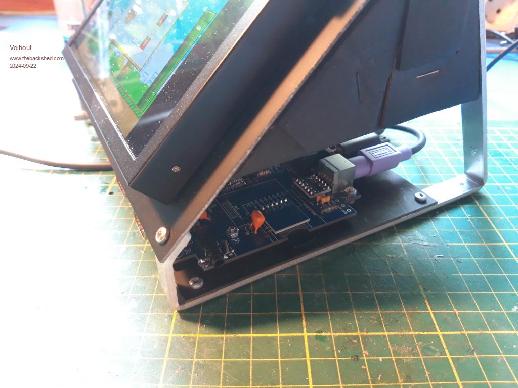 For screen I took the 7" IPS monitor I bought 1 year ago, since it has VGA, and also..HDMI... It is powered from USB-C -or- from 12V (dc jack). I tried it, and running 5V at the DC jack also works...