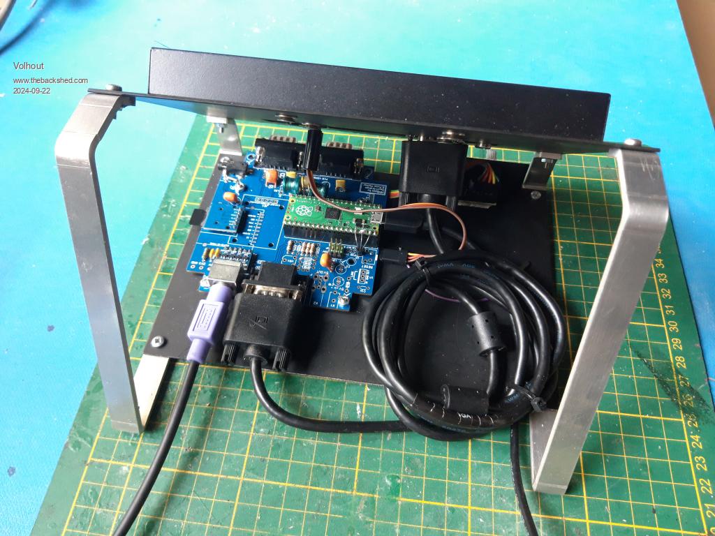 Looking at the future (Peters new 2350 board, and Mixtels recent designs, a 10x10cm pcb was all I would need to accomodate. So I took Mixtel's PicoGameVGA as my platform.