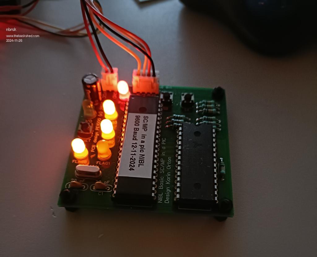 of my PCB. The SC/MP was my first computer I build. So I have a lot of memories about this. The PIC16F877 is used for a lot of SC/MP emulators. (NIBL BASIC interpreter and the MK14) The great fun about this is that the timing is very accurate for a SC/MP 2 (INS600) at 4Mhz. I've modified the NIBL emulator software in  that way that it emulates the halt-reset function of the Elektor SC/MP computer.