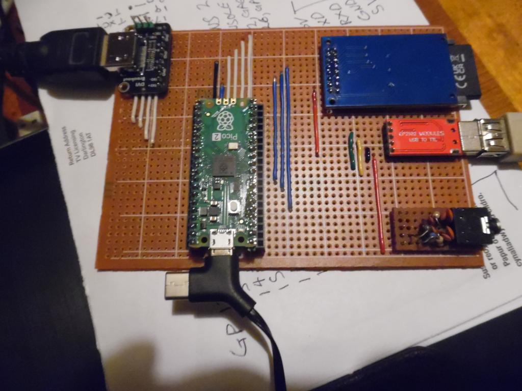 oops. I pressed enter and can't edit now. for those who still use strip board. I tried "diy circuit layout" which is free and does stripboard. not bad. I realised after I built it, it could be smaller, if I used a micro sd card reader and a usb c usb to ttl converter and moved stuff around. > option list PicoMiteHDMI MMBasic USB RP2350A Edition V6.00.01RC4 OPTION SERIAL CONSOLE COM2,GP8,GP9 OPTION AUTORUN ON OPTION FLASH SIZE 4194304 OPTION COLOURCODE ON OPTION KEYBOARD UK, 0, 0, 600, 150 OPTION CPUSPEED (KHz) 315000 OPTION SDCARD GP22, GP6, GP7, GP4 ![]() Edited 2024-12-18 05:39 by stanleyella |