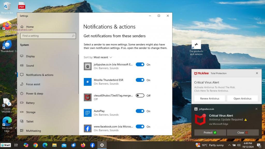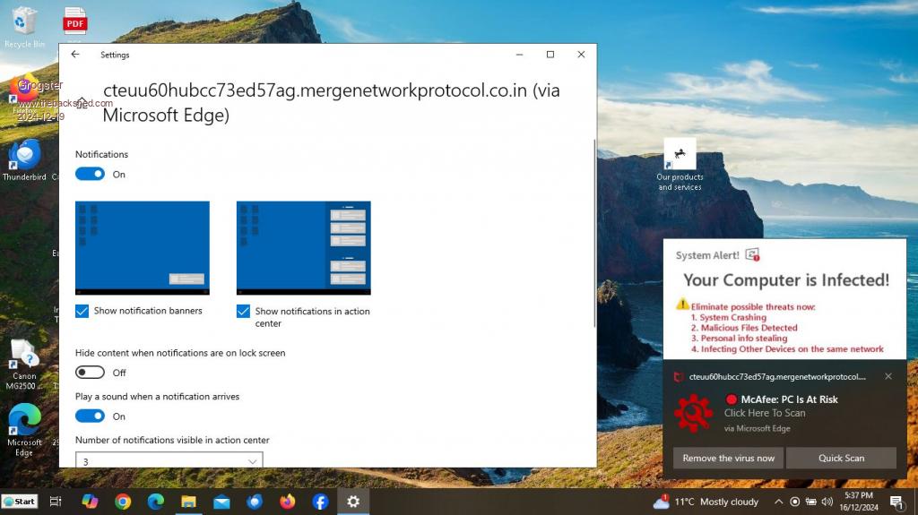 These notifications APPEAR to be coming via Microsoft Edge, but in both cases that I have seen, neither person uses MS Edge, they use either Google Chrome or Firefox, so not quite sure how MS Edge can be routing this crap, if MS Edge is not being used as the web browser by either user.