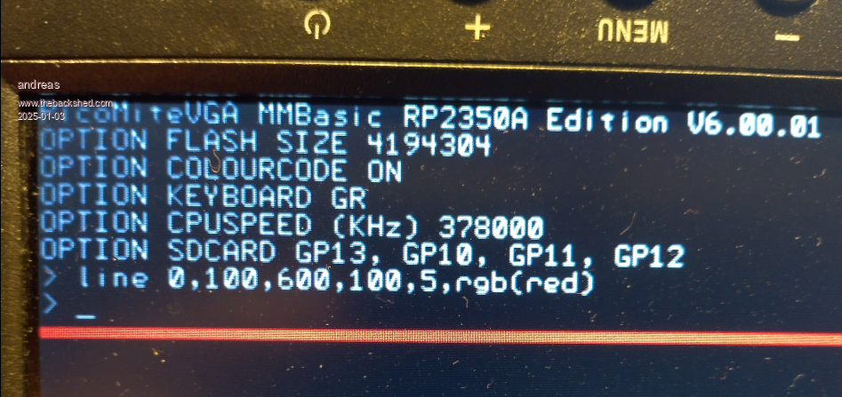 For me the surprise is CLS RGB(red) gives a red screen in Mode 1. . Edited 2025-01-03 08:10 by phil99