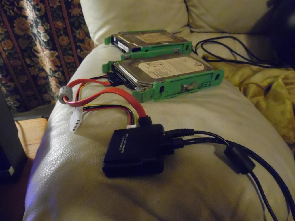 oops,says it all. just decommissioned a pc but didn't transfer much, thought I had. so got the 250g ssd out then the 2 hdds. I found a sata hdd to usb from maplin ! that's old kit but still works