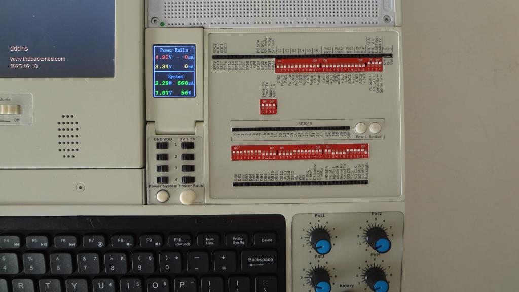 Especially the breadboard area is cool, I have something similar in mind but not this big as yours. Cool to see some actual projects. For what are all those red DIP switches?