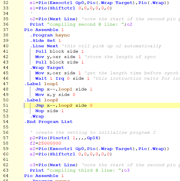 Hi Kevin, We'll just modify the current appendix F. We'll replace the section with individual PIO ASSEMBLE lines with this new format. The appendix may even get shorter. All depends on when Peter plans to release 6.00.02. Volhout PicomiteVGA PETSCII ROBOTS |
