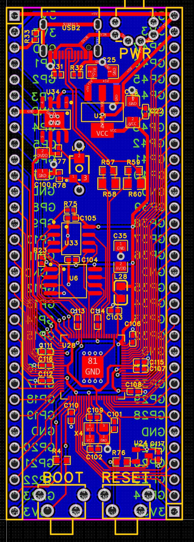 Looking good there - I like your circuit around U34 and i reckon you’re onto something there regarding it making a big difference to ‘stability’. Watching with great interest. FYI - I have a very stable ‘complete setup’ based around the RP2350B XL Stamp exposing all GPIOs. Proof of concept built on stripboard and using multiple break-out modules. Your module here would be perfect to replace the XL Stamp…. |
