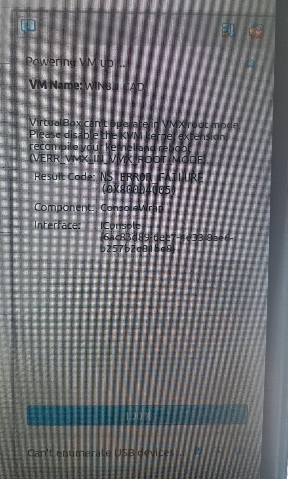 I have VB installed on Mint, and I have setup a new VM with a Windoze 8.1 ISO image, but when I try to boot the VM and start the Windoze setup inside that VM, I get this "Aborted" error saying to recompile the kernel.