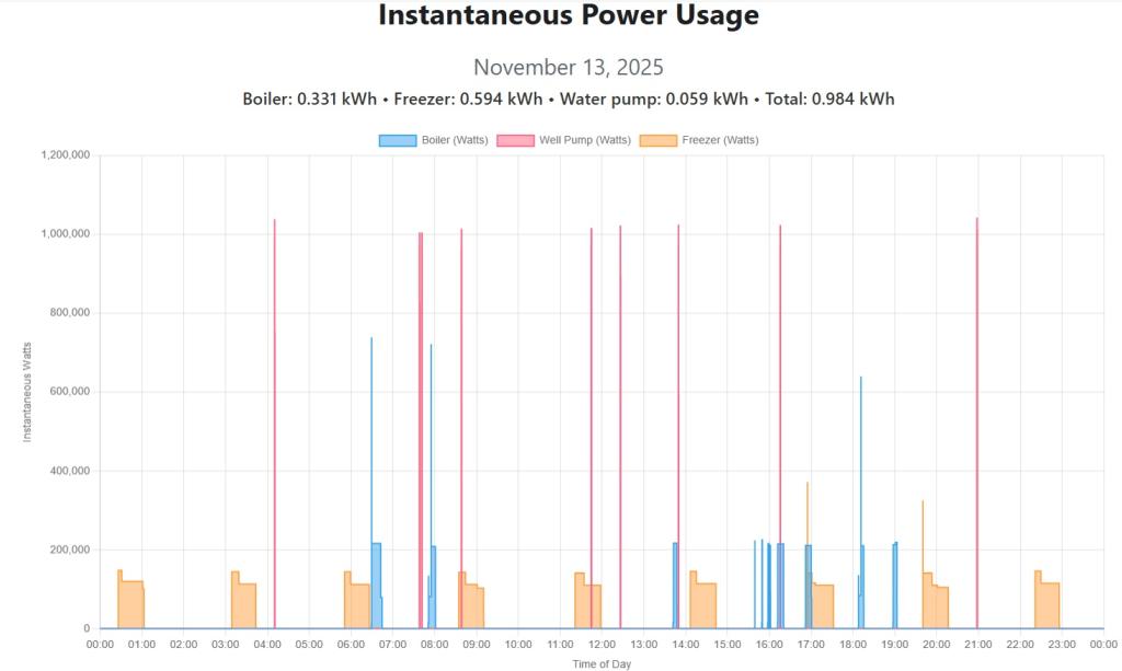 In preparation for (next year), trying to get my boiler, well pump, and freezer to run from solar panels, I had Gemini produce plots of daily runtimes.