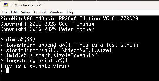 In RC20 I will also include an new command LMID this is the longstring equivalent of MID$. This will allow you to have a large text file in a longstring and with a combination of LINSTR and LMID be able to edit it in quite a powerful way.