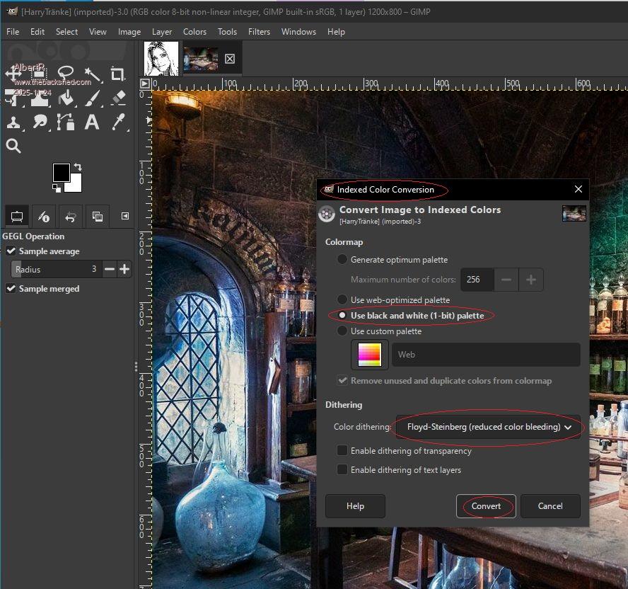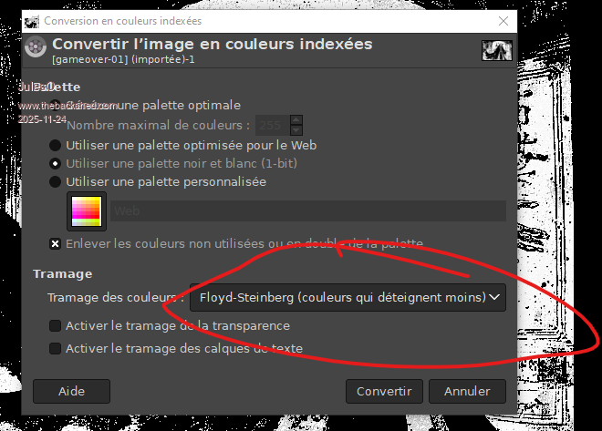 4. Activate Floyd-Steinberg dithering,