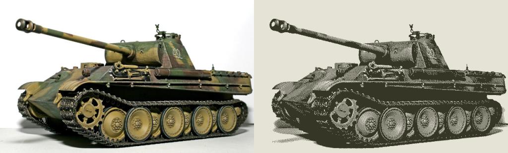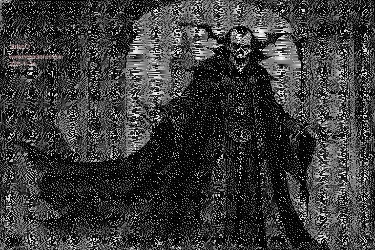 Bleep said  So I think you need the original picture in colour or shades of grey, then use a program to convert it to a 2 colour image, black and white, but using dithering to reproduce the shades of grey