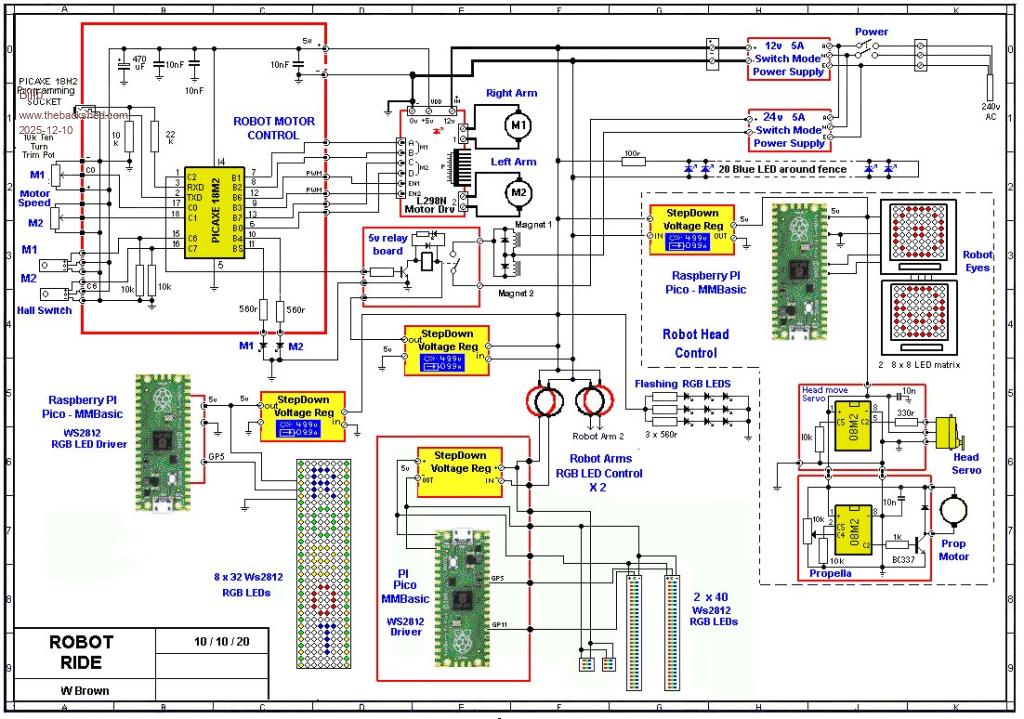 I have used about 30 raspberry picomites controlling many WS2812 LED Strips and some picaxe controllers for the motion control in the carnival section.
