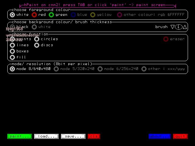 because of the help from vegipede I continued to code my simple painting program. there is no real sense because there are thousends of such programms for "normal" computers and you can transform pictures via sd card to the cmm2. but i wrote for every system a paint program for fun.