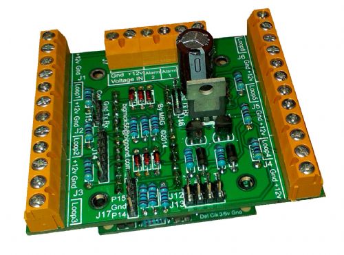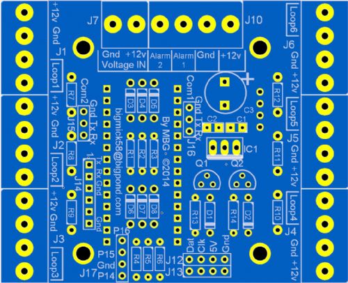 They are as follows: MuP-Security (75mm x 61mm) This PCB plugs into MuP and is the basis of a home/other security system. It has support for 6 alarm sectors (12 if Zone doubling is utilised), it has two transistor driven outputs that can go to Relay PCBs or direct drive of 12V 500mA max sirens/ Strobe lights. It also has 2 Comm ports for connection to, for instance, 3G Modem Dialers or other devices. I have also added support for wiegand Protocol, but this may or may not be possible to `bitbang' on the uMite. User interface is via I2C and is the reason I designed the IO-Panel (see below).