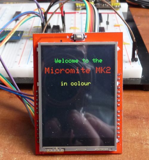 Fantastic Matherp, All, I now have my eBay $7 module working thanks to Peter's persistence. It is a bit unfortunate that it requires 13 pins to operate this particular module (ignoring the touch screen requirements) but at least the I2C pins are now clear.. I was talking to Peter about making a PCB that has a 'mite on it to drive this module and accept commands via I2C from a `master' mite.. but he has drawn my attention to another SPI based module that I feel would kill this particular one as it only requires 4 I/O pins (I dont know what the 4th pin is for unless it is a reset). This module is similarly priced and I can tell you the demo Peter has written is VERY impressive.. well worth spending $7 just to see it going through its paces. Well Done Peter..