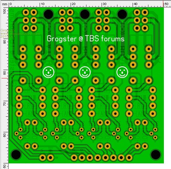 I still have 39 of these boards, so if anyone wants one, flick me a PM. US$5 for a board including airmail to anywhere on the planet. US$10 for a panel of four boards including airmail to anywhere on the planet. Board only - you will need to populate. All through-hole assembly. Smoke makes things work. When the smoke gets out, it stops! |