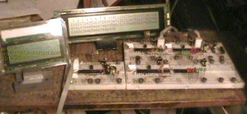 Hi Tyler; I thought I would put a plug in for the Plug Board uMites. There are 6 uMiteIIs here. The bunch on the right and the 2 LCD displays run as Slave IEEE485. Mostly as software experiments. And 3 RTCs. All the LED indicators are the LUMEX SSL-LX3044 12V LEDs with built in ballast resistors. They are very handy on plug boards. A tad spendy at $25us/100. They come in 3 colors. I prefer the 12V types as they draw less current than the 5V versions and are just the right brightness all the way down to below 3V. Cool huh!!!