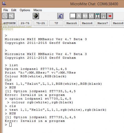 Beta 1 (see this post) contained a serious bug which could cause the Micromite to crash on startup. This has been fixed and Beta 2 is available from here: geoffg.net/Downloads/Micromite/Micromite_4.7_Beta2.zip (this link works) So please skip Beta 1 and go straight to this. Geoff Geoff Graham - http://geoffg.net |