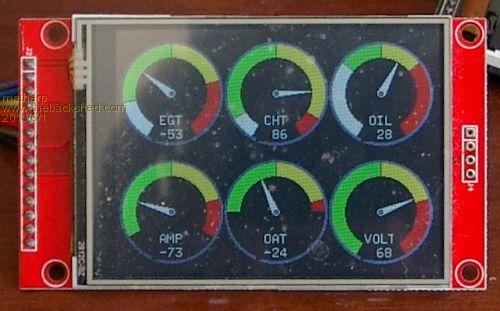 I'm playing with the development of some instruments for measuring things like Exhaust gas temperature (EGT), Cylinder head temperature, RPM etc. The display I'm using is the ILI9163 which is small (the unit must fit in a 2" circle) and bright. The code should run on an ILI9341 but I haven't tried it. However, as always, my coding is not complemented by my complete lack of artistic ability.